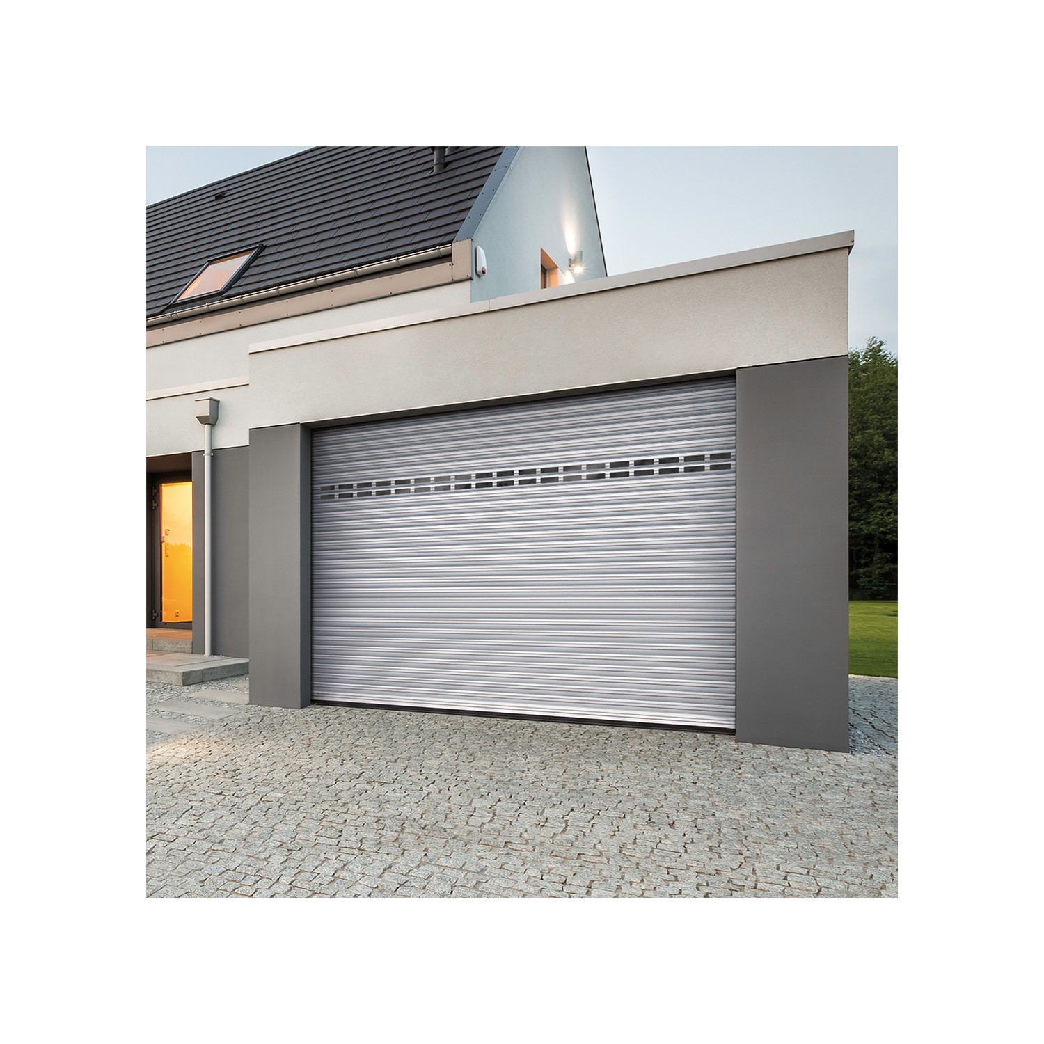 Porte de Garage Enroulable AMBRE en aluminium avec hublots - Motorisée SOMFY - H200 x L300cm