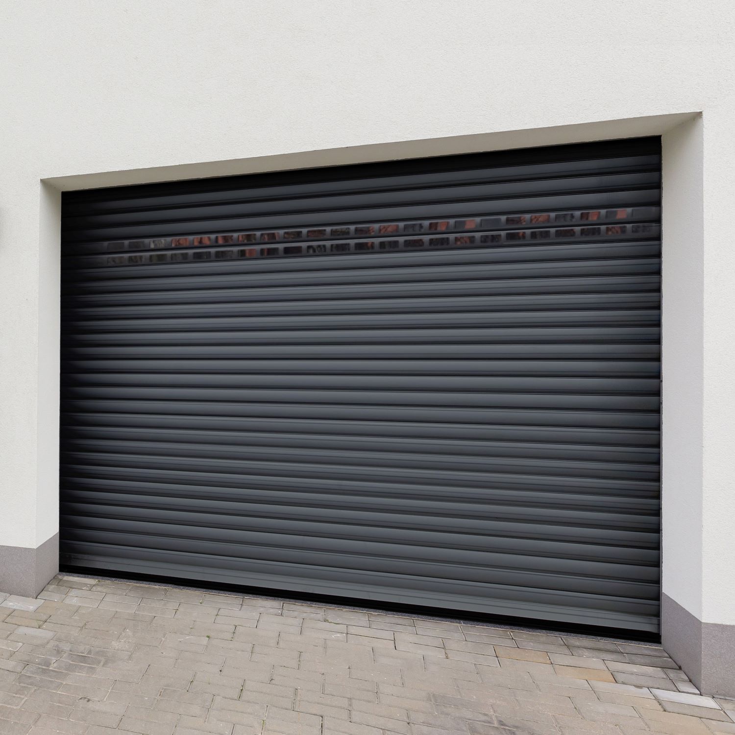Porte de garage enroulable alu h212x240cm avec hublots Ambre motorisée, centrale Somfy