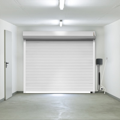 La porte de garage enroulable AMBRE est idéale lorsque l'espace sous plafond est limité. En effet, son tablier s'enroule dans un coffre compact vous permettant de garder un espace sous plafond dégagé.