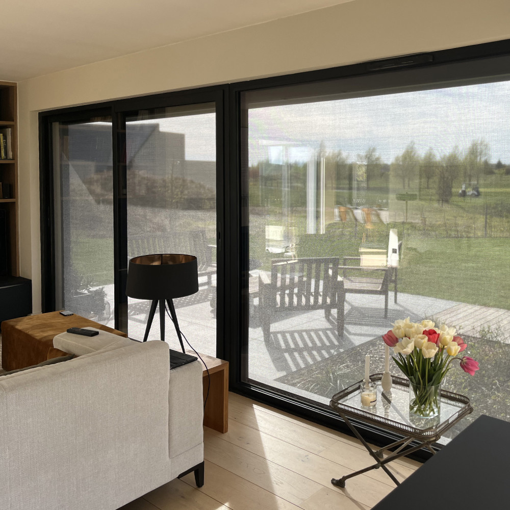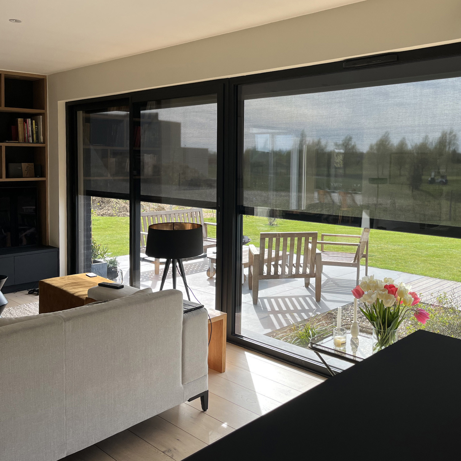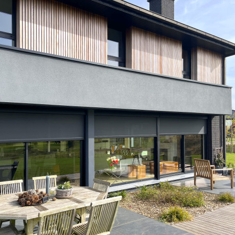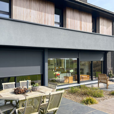 Découvrez le store enrouleur extérieur motorisé avec sa toile en tissu screen, parfait pour l'extérieur. Store avec moteur radio, manœuvre par télécommande.