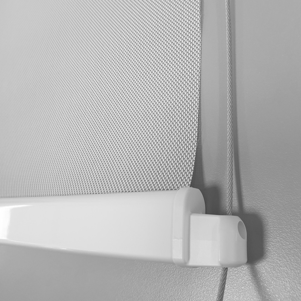 - Largeur adaptable par simple recoupe, à l'aide d'une scie à métaux pour l'armature et un paire de ciseaux pour la toile.